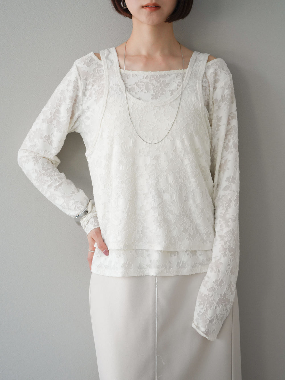 【預購】鏤空層疊半身裙/象牙白