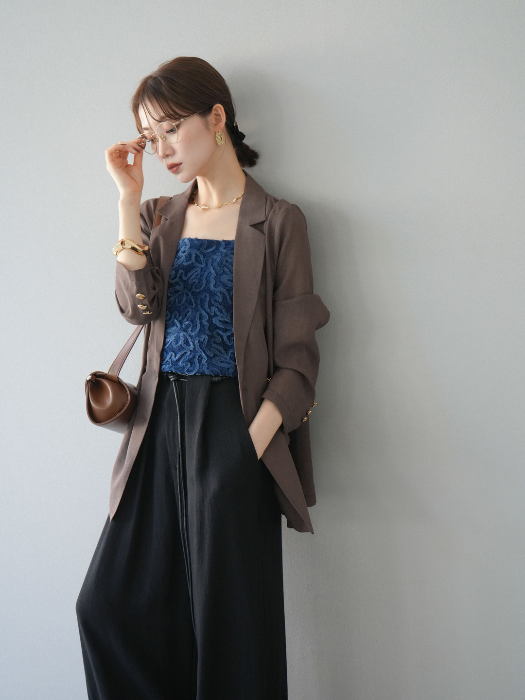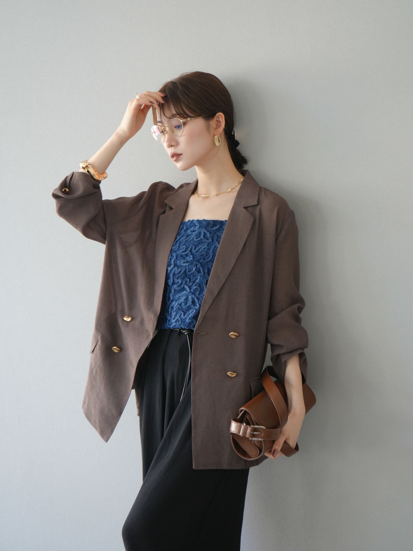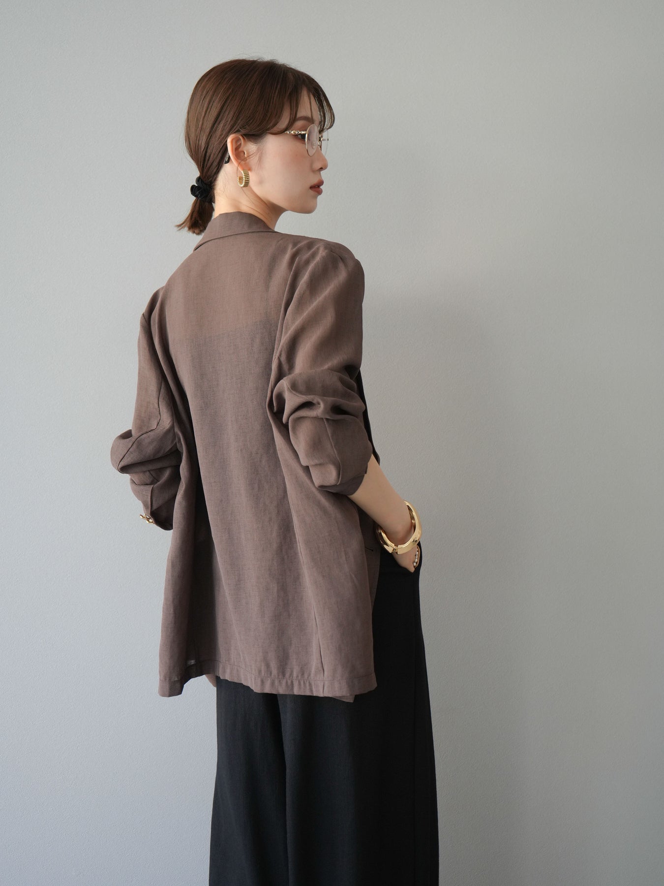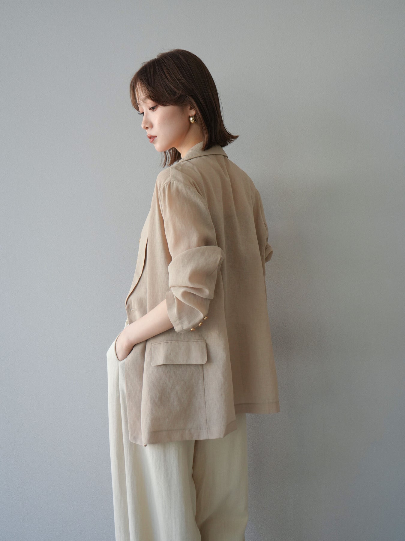 輕盈的透視夾克,散發著古典氣息。適度的透明度營造出季節感,輕鬆隨興的穿搭也能完美呈現造型。金色金屬紐扣點綴其間,更添優雅幹練的氣質。適度及臀的長度,寬鬆的輪廓巧妙地遮蓋住身材,亞麻般的天然材質帶來舒適的穿著體驗。它不僅適合搭配洋裝、半身裙,也適合搭配牛仔褲和寬褲。無論工作或休閒,都能輕鬆駕馭。 ※除下裝、吊帶背心(內衣)以外的商品均為標準品,不含內衣。