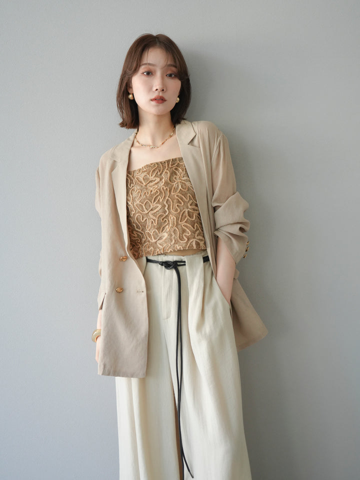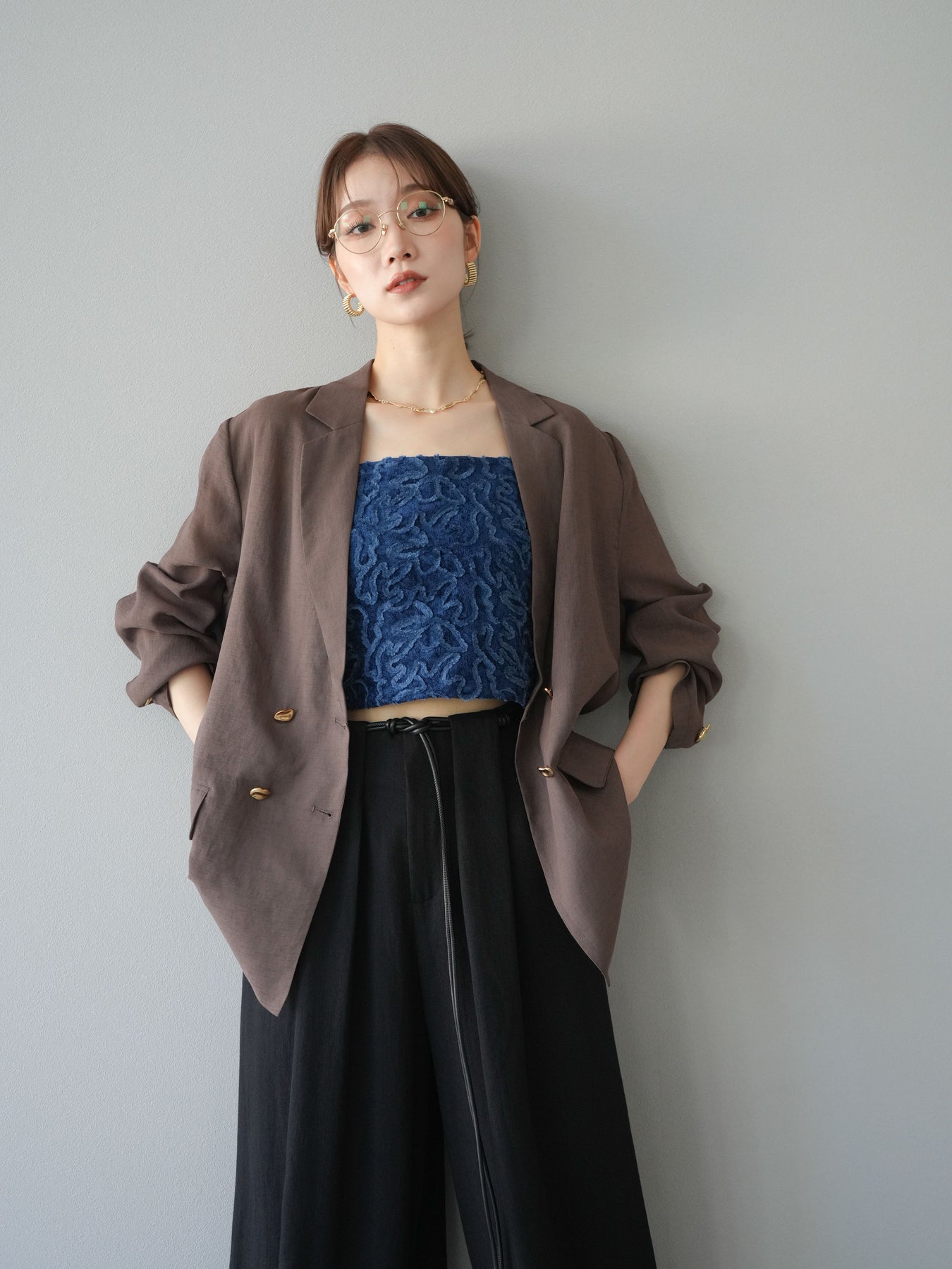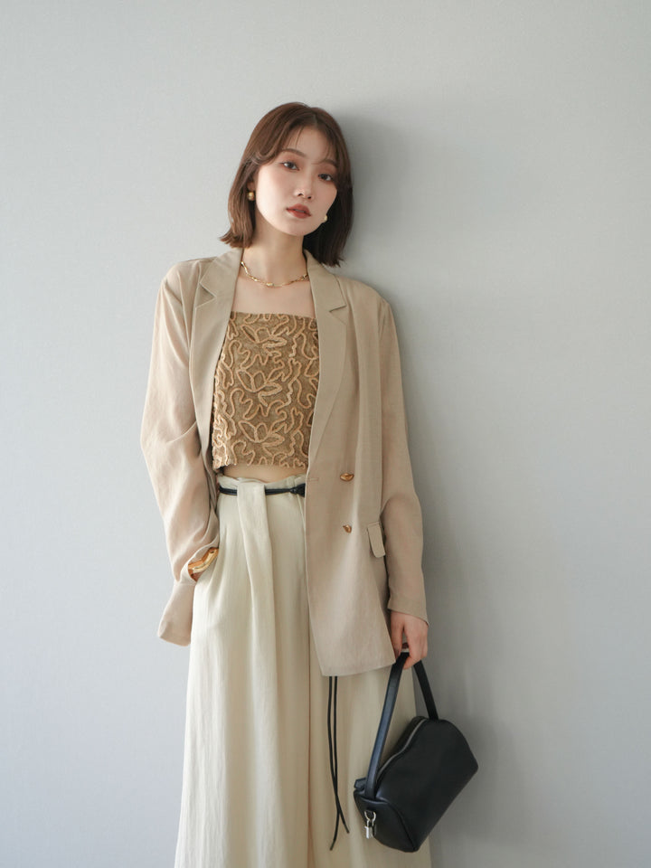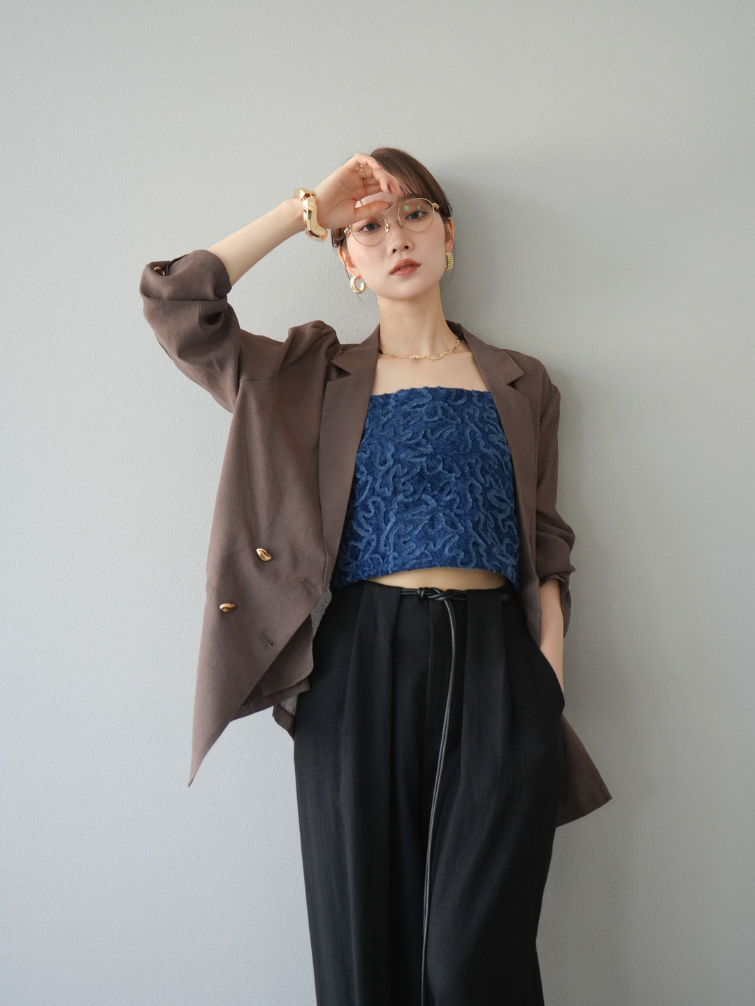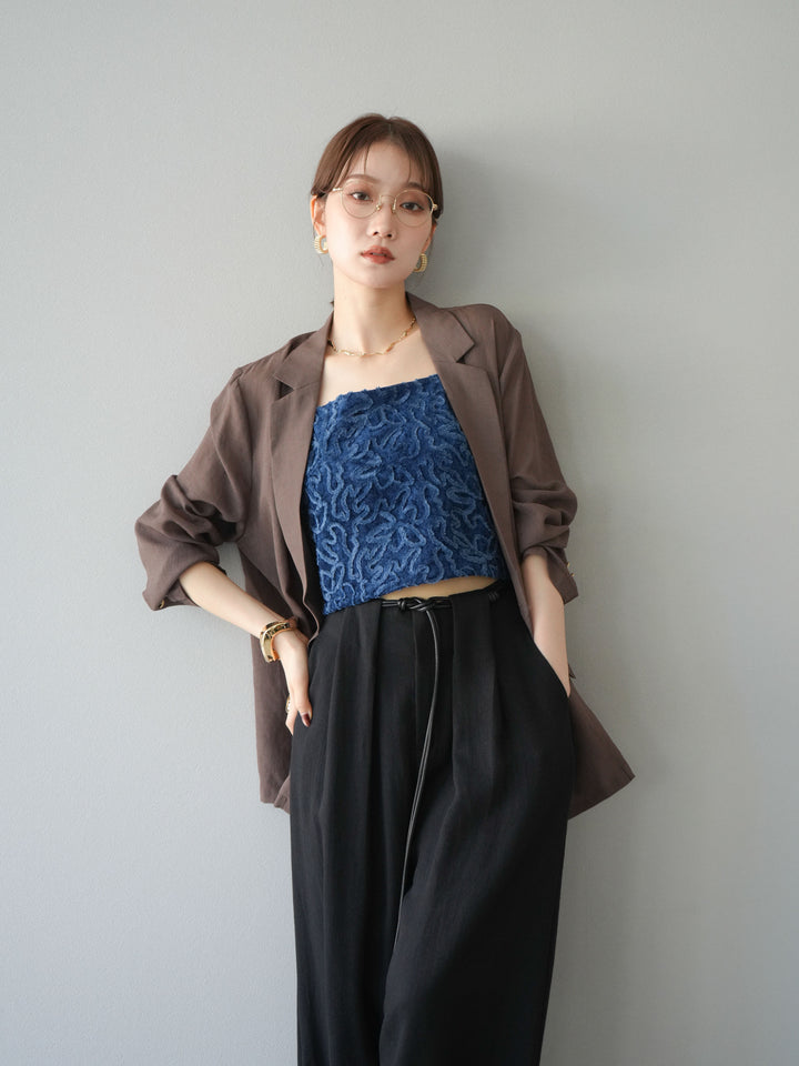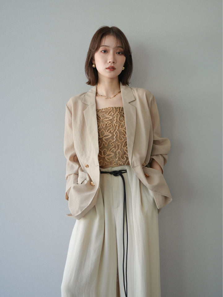 輕盈的透視夾克,散發著古典氣息。適度的透明度營造出季節感,輕鬆隨興的穿搭也能完美呈現造型。金色金屬紐扣點綴其間,更添優雅幹練的氣質。適度及臀的長度,寬鬆的輪廓巧妙地遮蓋住身材,亞麻般的天然材質帶來舒適的穿著體驗。它不僅適合搭配洋裝、半身裙,也適合搭配牛仔褲和寬褲。無論工作或休閒,都能輕鬆駕馭。 ※除下裝、吊帶背心(內衣)以外的商品均為標準品,不含內衣。