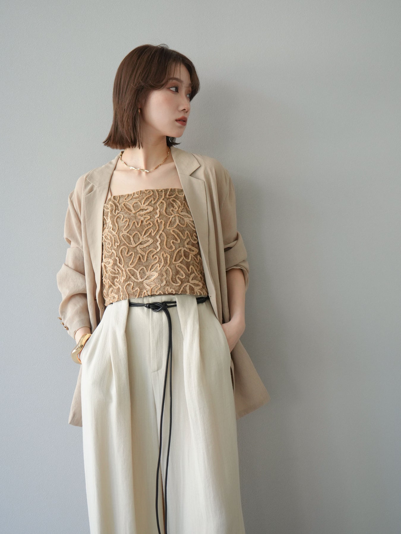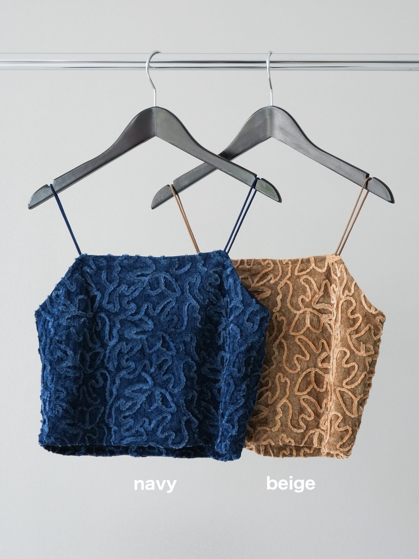 ◆ [預購] 滾邊花薄紗天鵝絨吊帶背心
