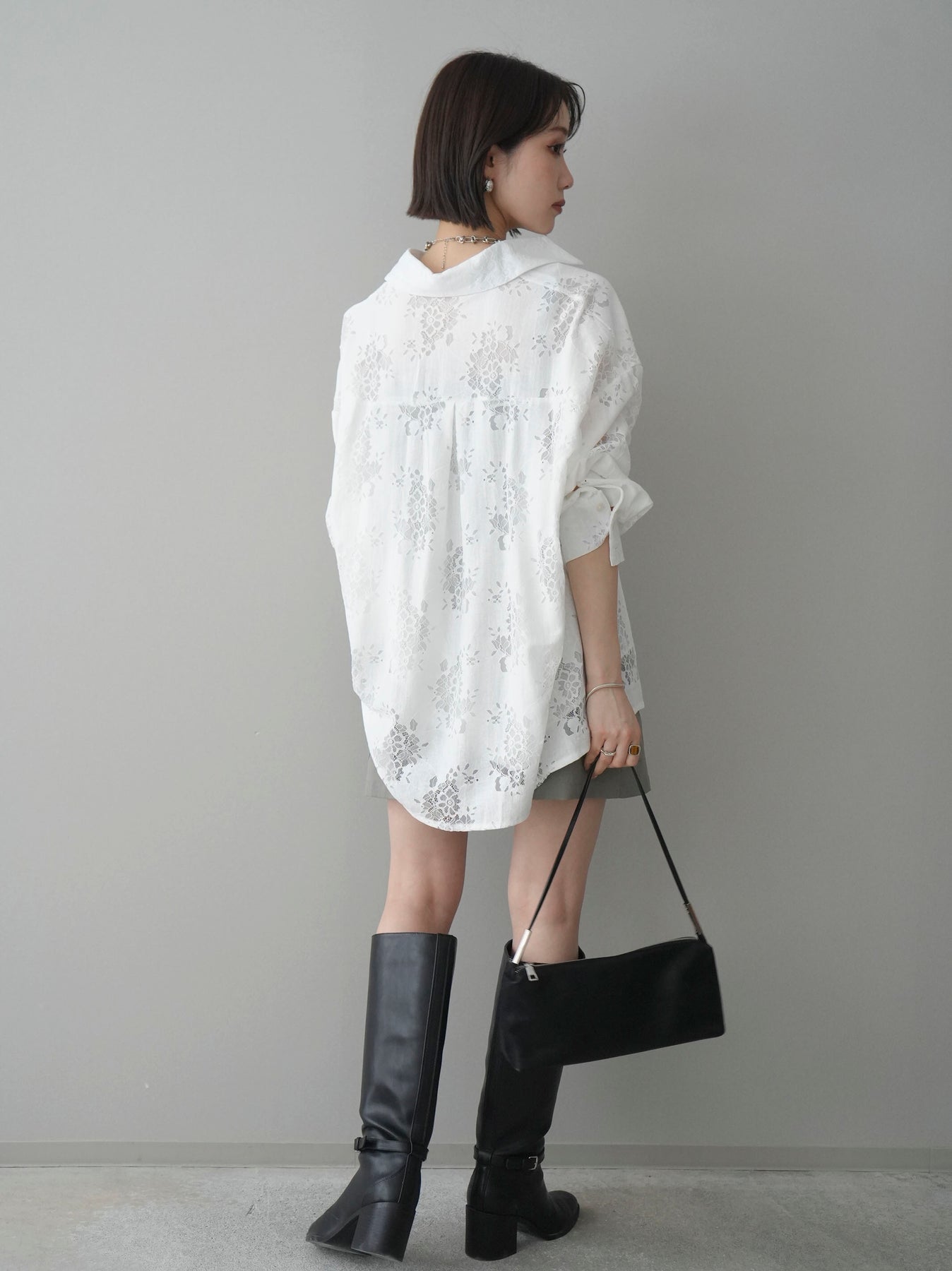 這款優雅的襯衫式外套,全身飾以精緻的提花蕾絲。立體編織圖案為簡約的輪廓增添了層次感,只需輕輕一披,即可瞬間提升整體造型。寬鬆舒適的版型,既展現了精緻優雅的氣質,也帶來舒適的穿著體驗。及臀的長度巧妙地修飾了身材曲線,無論是搭配褲裝或裙裝都非常合適。您可以單穿,扣上紐扣,也可以內搭內衣,使其成為一件四季皆宜的百搭單品。 *請注意,除下裝和吊帶背心(內衣)外,其他商品均不包含內衣。