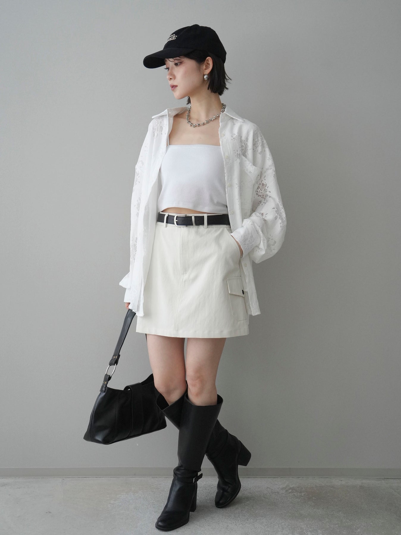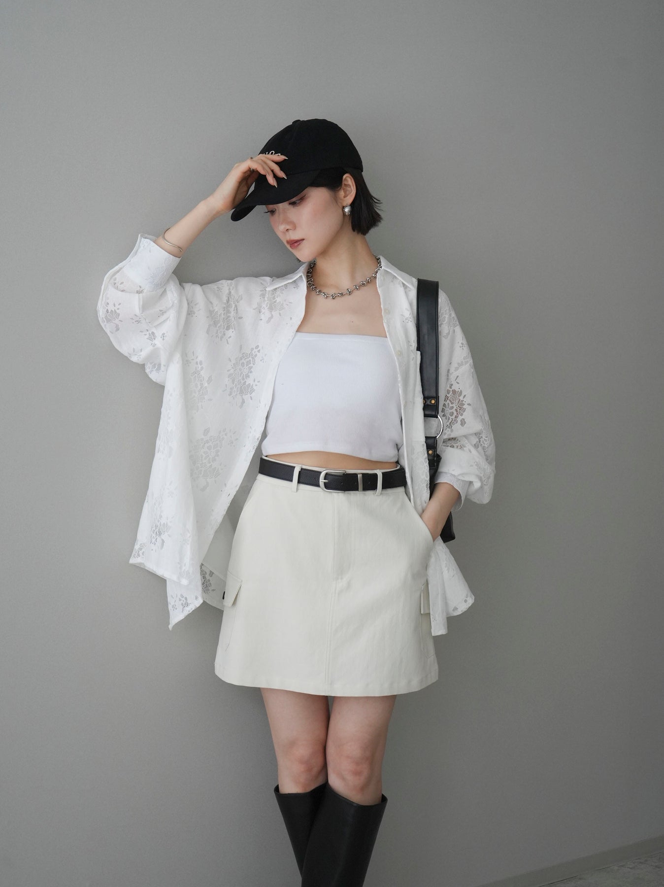 這款繫帶工裝迷你裙採用布料挺括有型,側邊翻蓋口袋增添亮點,為簡約設計注入休閒氣息。雖然裙長較短,但俐落的A字輪廓卻能完美修飾腿部線條。隨附的皮帶可收緊腰身,打造迷人曲線。將腰帶塞進褲腰,可打造挺括有型的造型;搭配寬鬆上衣,則能營造平衡的時尚感。這款百搭單品易於融入日常穿搭,並能與多種風格完美融合。 *請注意,除下裝和吊帶背心(內衣)外,其他商品均不包含內衣。
