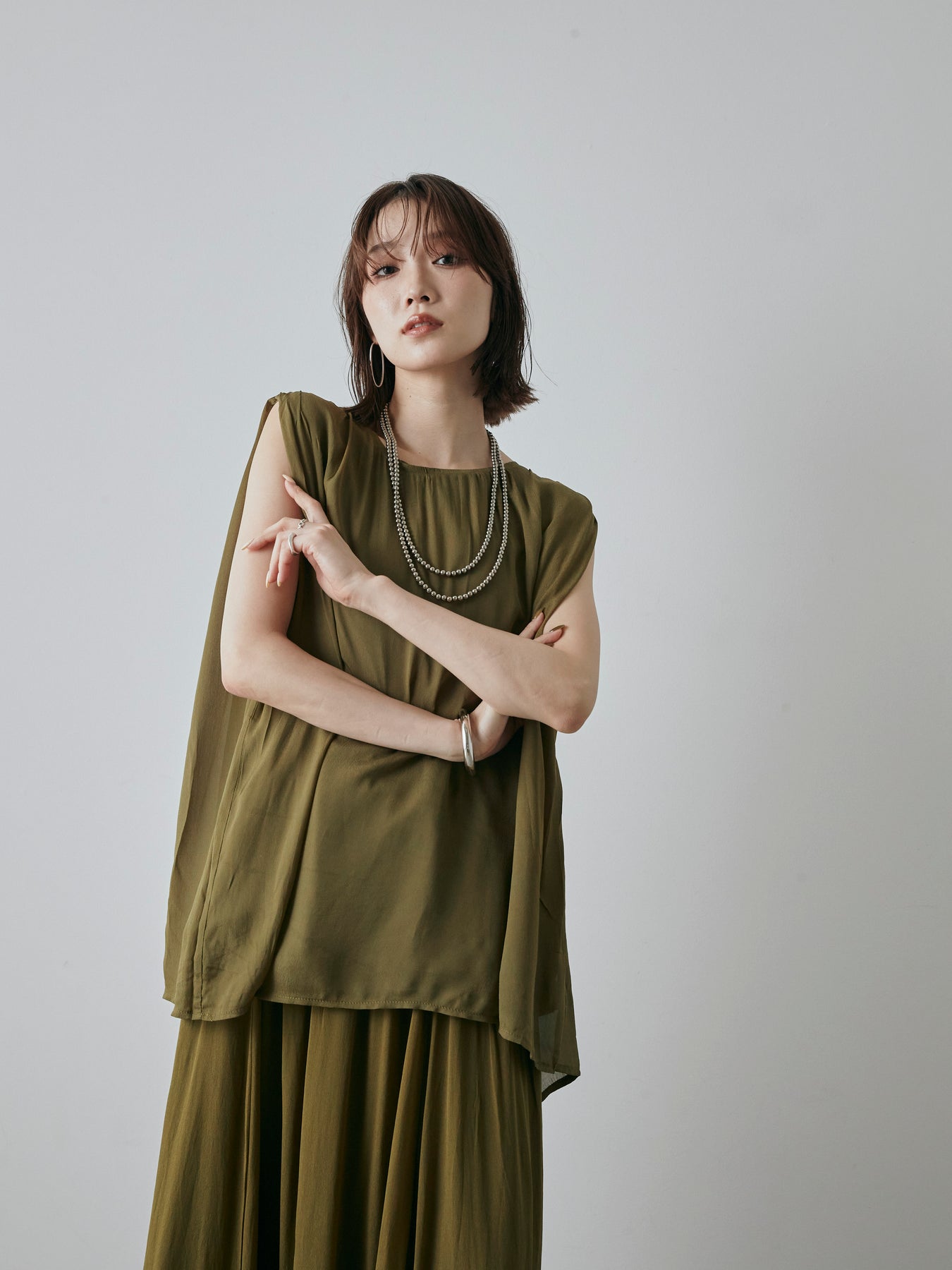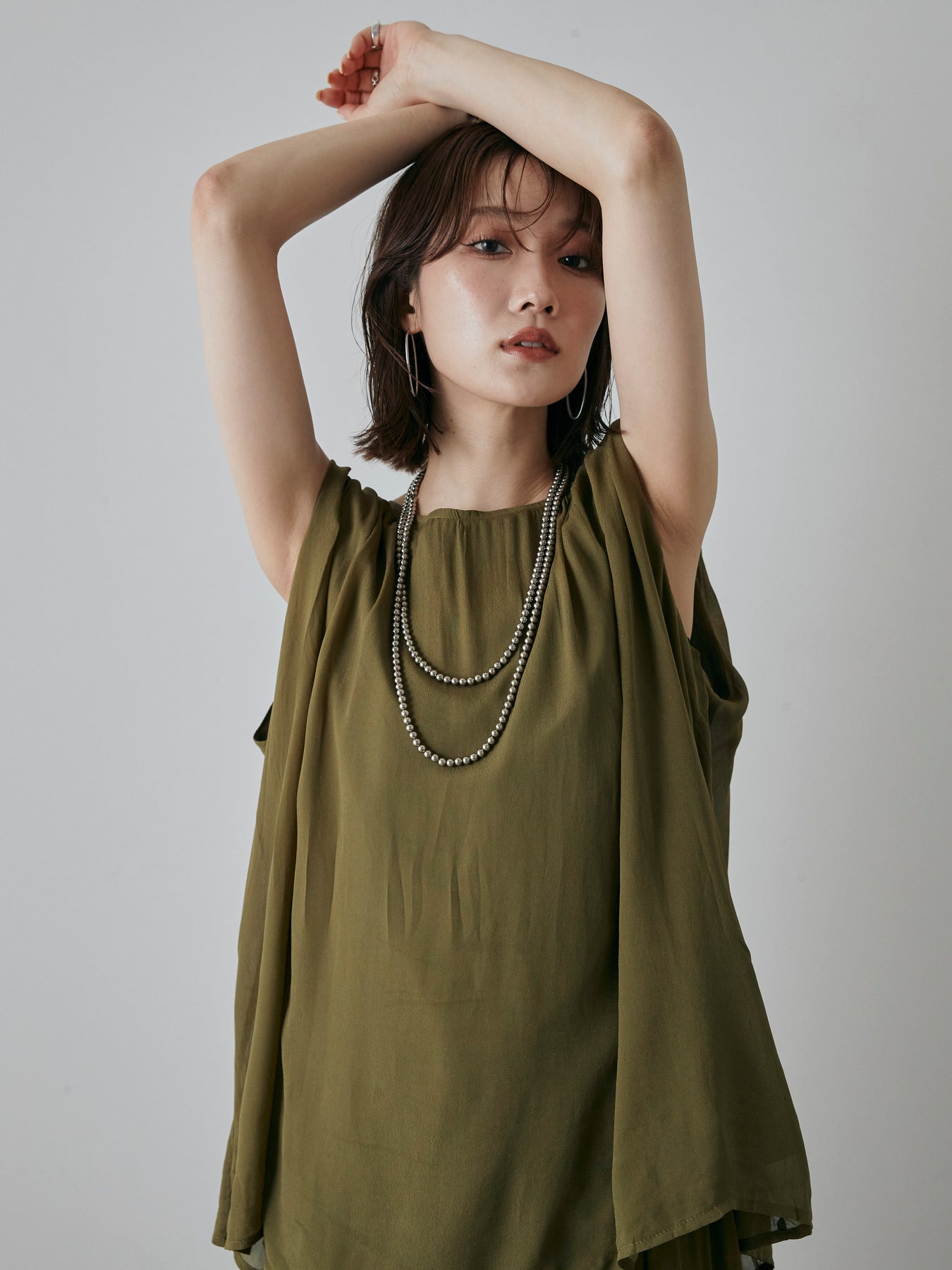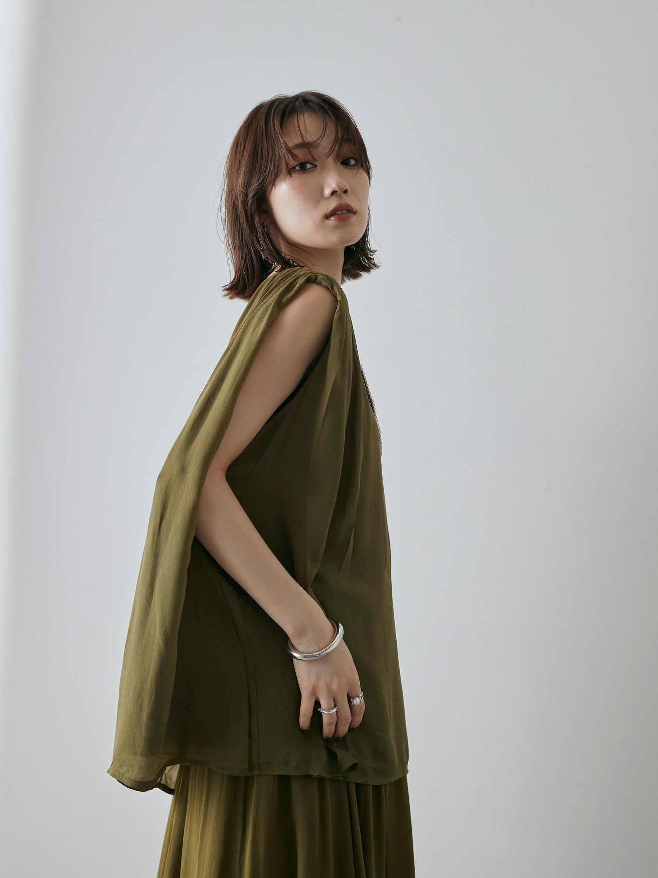 具有現代感的無袖上衣,採用輕薄透明材質,肩部有褶皺細節。 寬鬆的輪廓輕柔地貼合身體線條,營造出輕鬆而精緻的印象。 肩線處的褶襉營造出立體效果,使洋裝呈現出纖細、動感的輪廓。 略微透明的材質增添了夏日的輕盈感,營造出涼爽、輕盈的印象。 搭配相同材質的下裝,打造時尚的單色風格。 即使與牛仔褲或休閒褲單獨穿著,這件衣服也能提升您的穿搭品質。