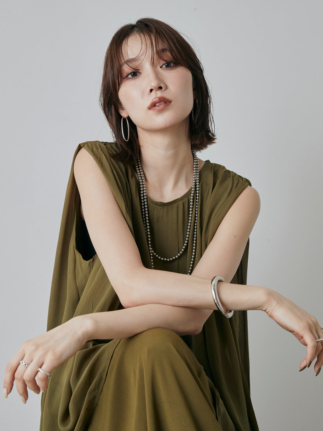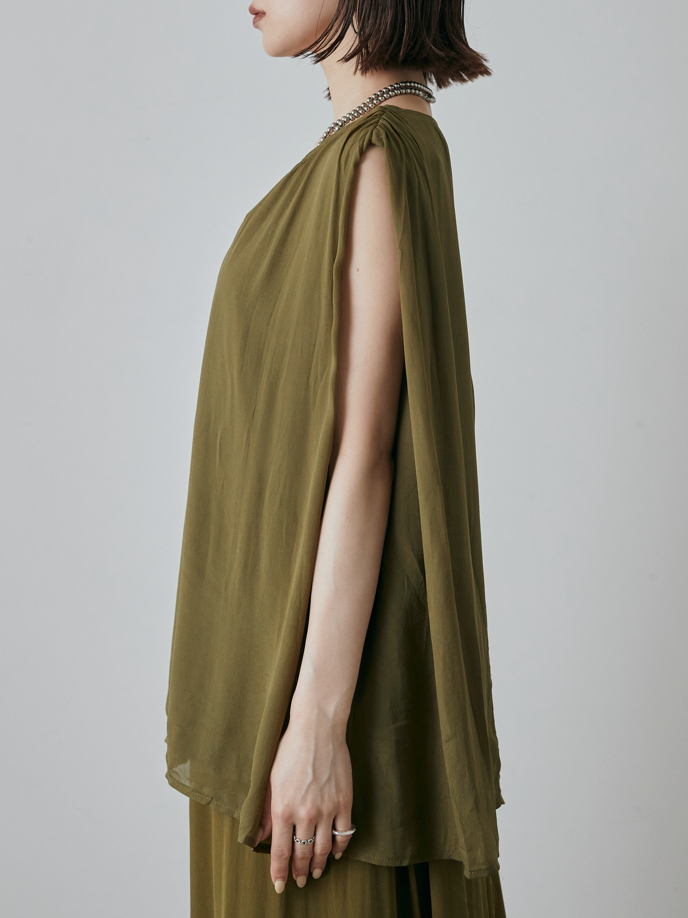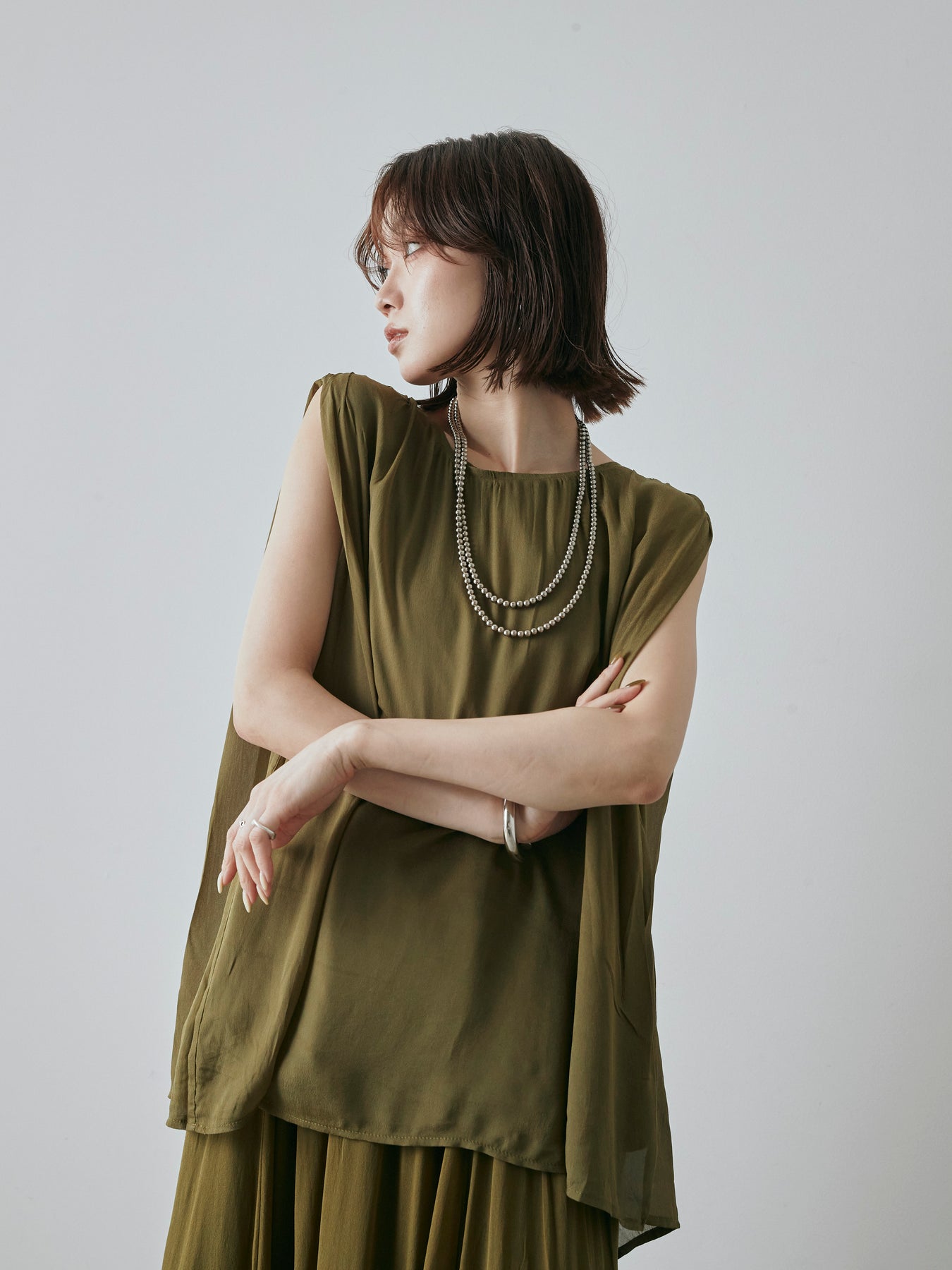 具有現代感的無袖上衣,採用輕薄透明材質,肩部有褶皺細節。 寬鬆的輪廓輕柔地貼合身體線條,營造出輕鬆而精緻的印象。 肩線處的褶襉營造出立體效果,使洋裝呈現出纖細、動感的輪廓。 略微透明的材質增添了夏日的輕盈感,營造出涼爽、輕盈的印象。 搭配相同材質的下裝,打造時尚的單色風格。 即使與牛仔褲或休閒褲單獨穿著,這件衣服也能提升您的穿搭品質。