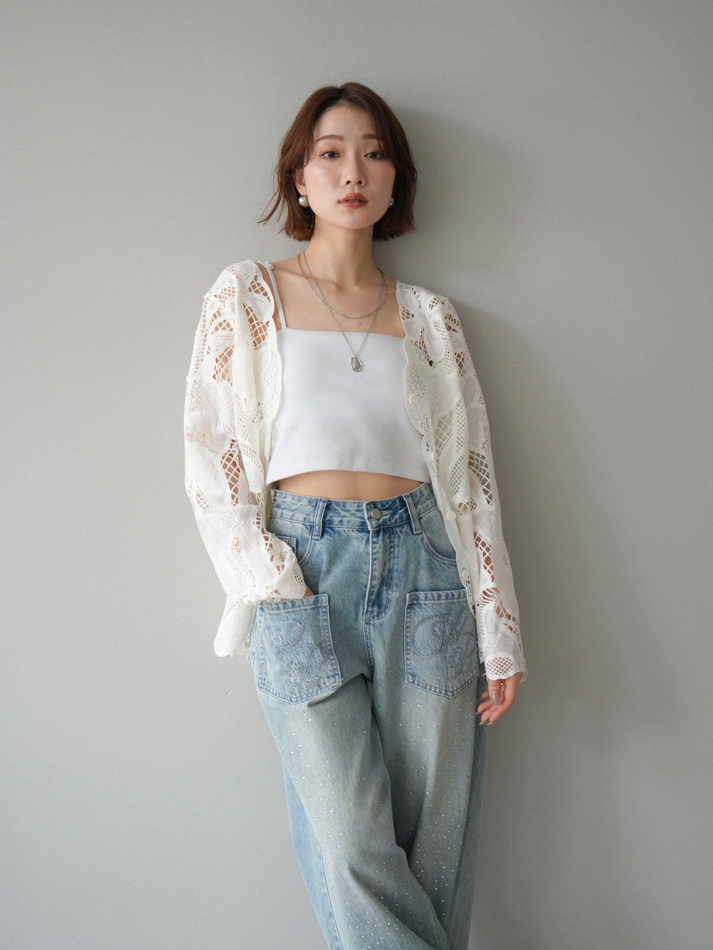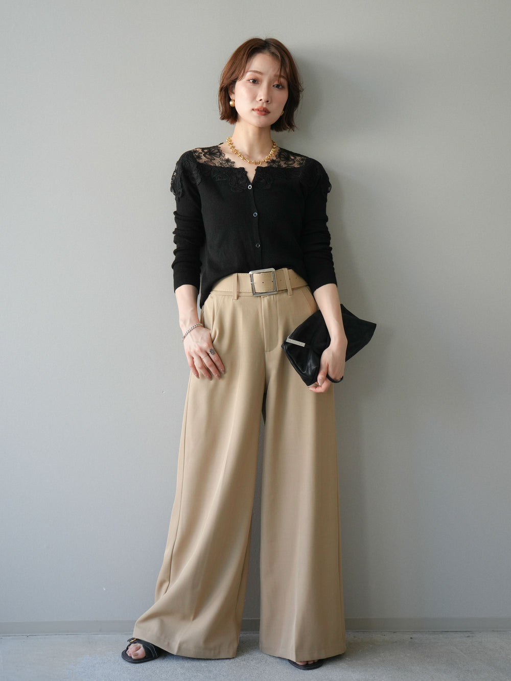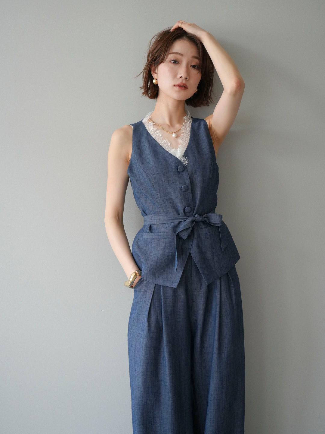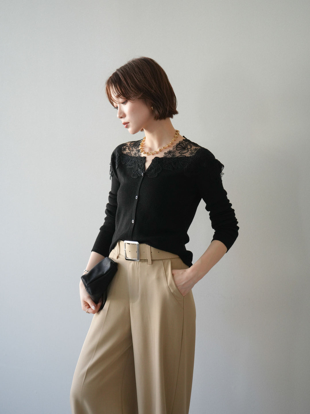 這款襯衫擁有引人注目的大蕾絲領,令人過目難忘。精緻的蕾絲完美勾勒臉部輪廓,營造出優雅嫵媚的氣質。前襟的緞帶細節更添一抹低調,強化了女性柔美的氣質。袖子採用柔和的喇叭形設計,隨著動作輕盈飄逸。寬鬆的版型穿著舒適,同時又是一件吸睛的單品,即使單穿也毫不遜色。無論是搭配牛仔褲等休閒裝扮,或是搭配正式下裝,都能輕鬆駕馭。 *請注意,除下裝和吊帶背心(內衣)外,其他商品均不包含內衣。
